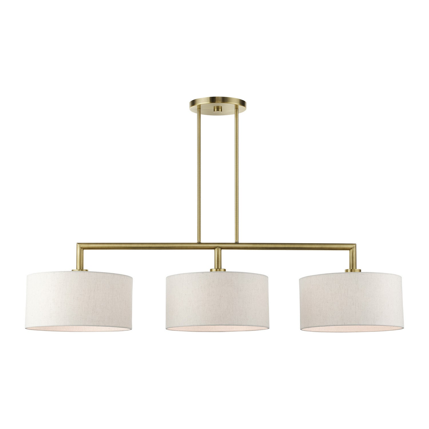 Livex Lighting 49293-01 Monroe Three Light Linear Chandelier Pendant Light Brass - Antique Transitional Hand Crafted Hardback Shade Completely Finished With Oatmeal Color Fabric Outside & Inside. Please refer to the datasheet for all product specifications. Livex Lighting MPN: 49293-01