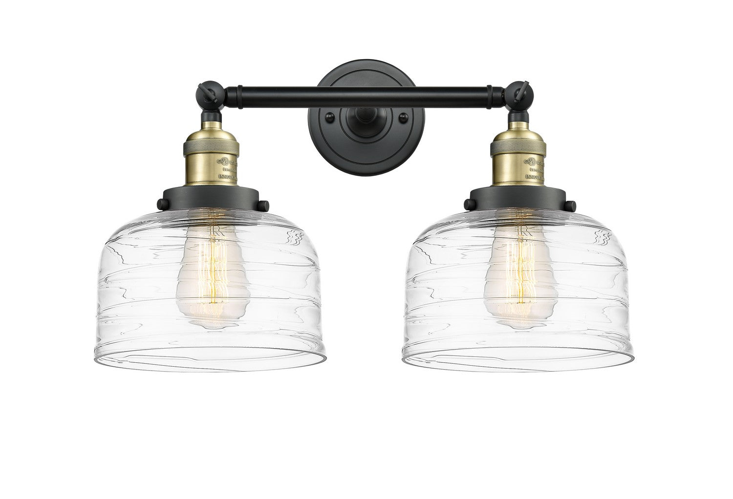 Innovations Lighting 208-BAB-G713 Franklin Restoration Two Light Bath Vanity Black Antique Brass Clear Deco Swirl Bell Glass. Please refer to the datasheet for all product specifications. Innovations Lighting MPN: 208-BAB-G713