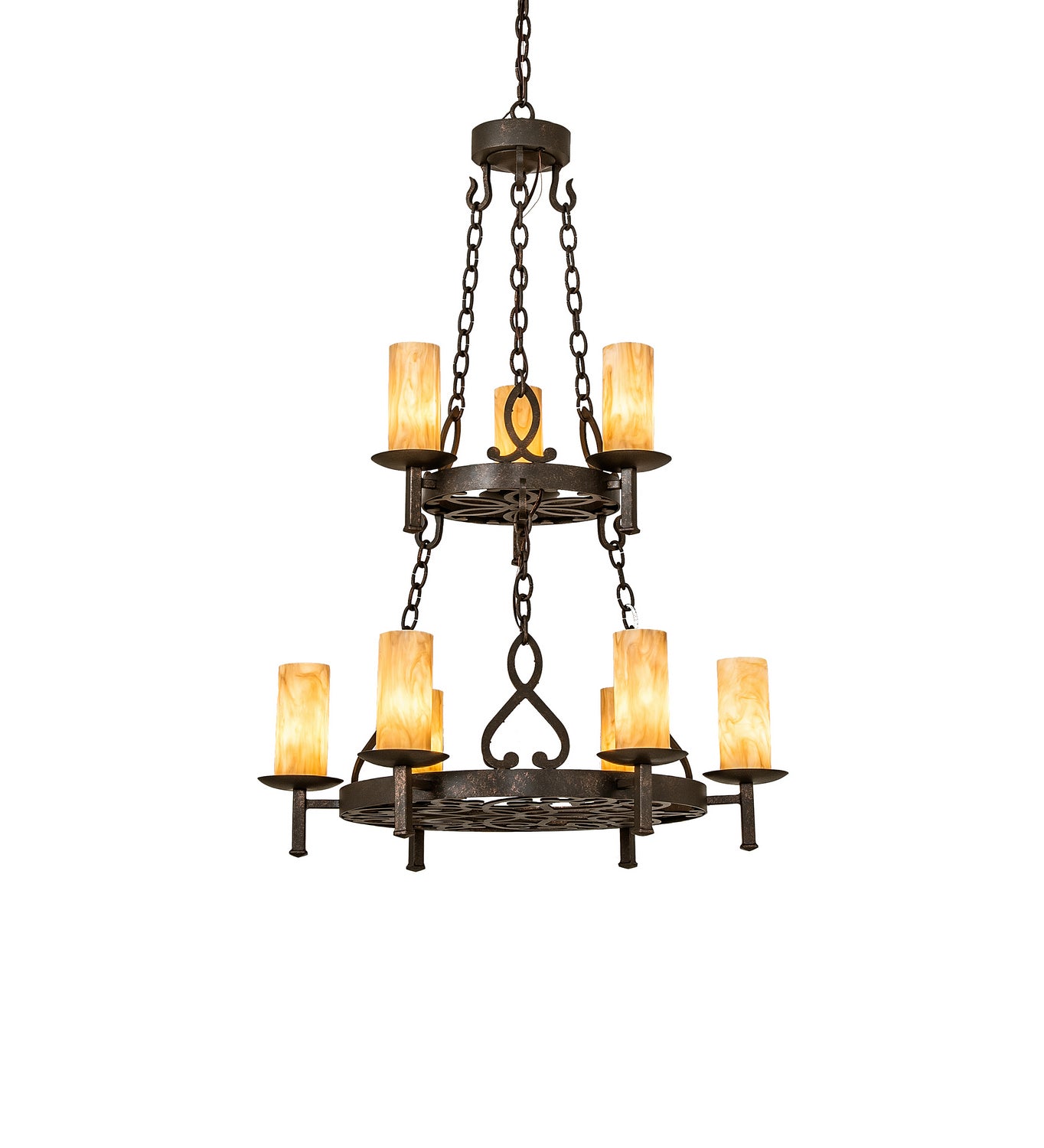 Meyda Tiffany Lighting 244248 Newcastle Nine Light Chandelier Chandelier Bronze / Dark Transitional Chocolate,Beige. Please refer to the datasheet for all product specifications. Meyda Tiffany Lighting MPN: 244248