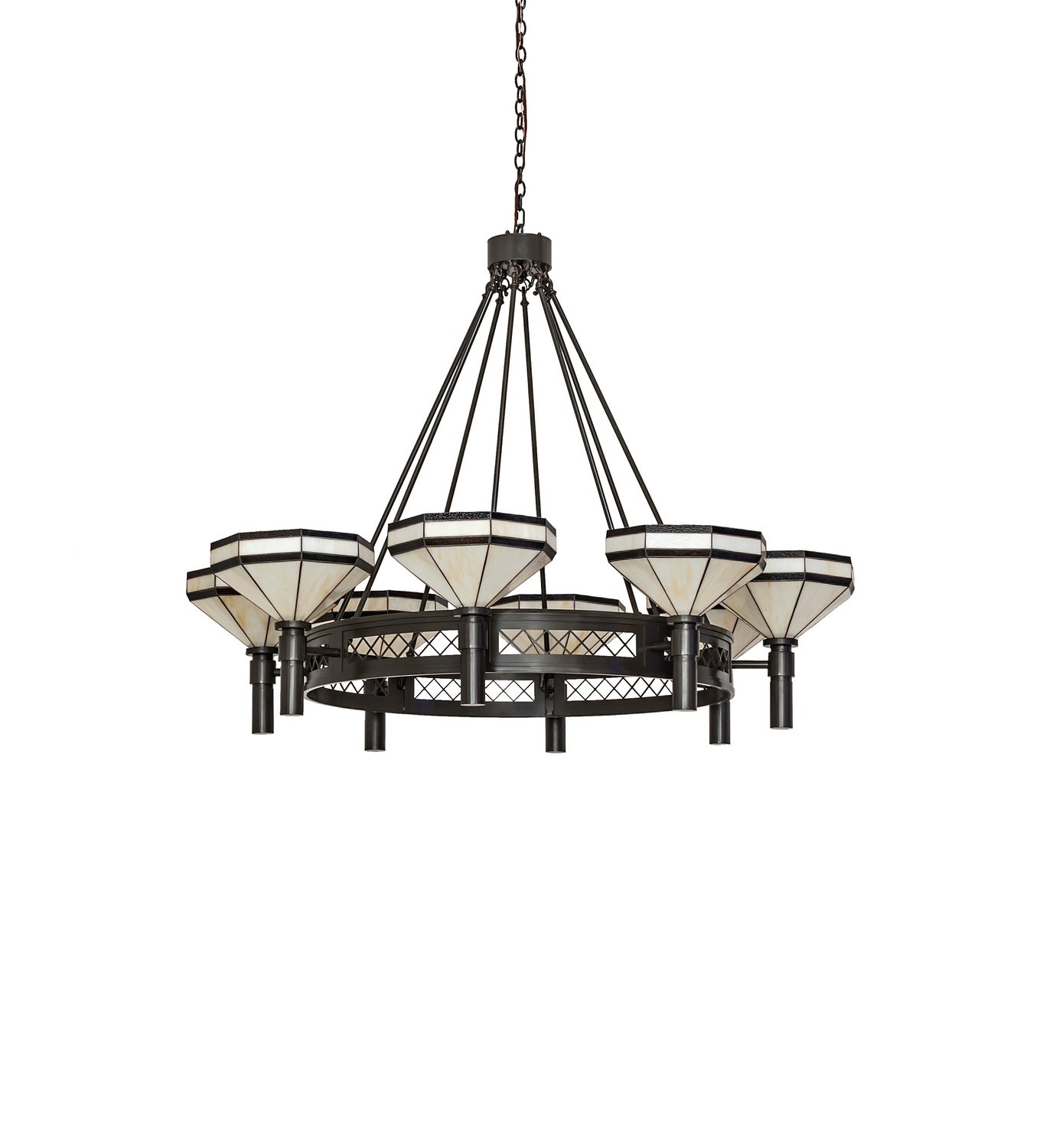 Meyda Tiffany Lighting 245369 Topridge Eight Light Chandelier Chandelier Bronze / Dark Tiffany/Mica Amber/Brown. Please refer to the datasheet for all product specifications. Meyda Tiffany Lighting MPN: 245369
