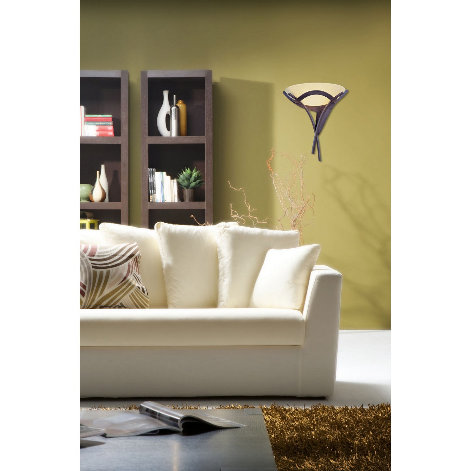 Warm Yet Contemporary, This Collection Boasts Gracefully Sculptured Metalwork. The Antique Bronze Finish Is Paired With Amber Scavo Glass For A Soft Effect, While The Tarnished Silver Finish Is Complemented By White Faux-alabaster Glass.