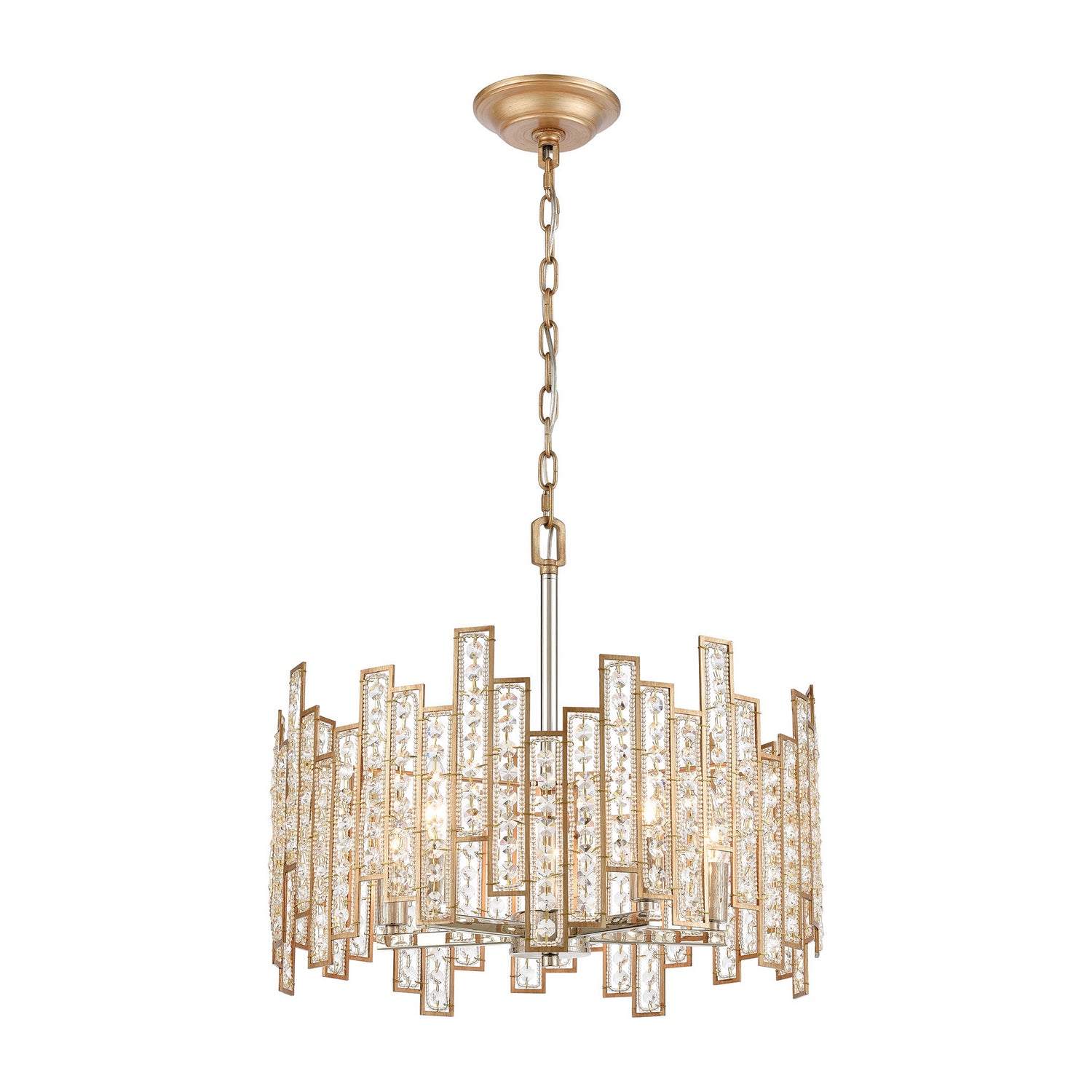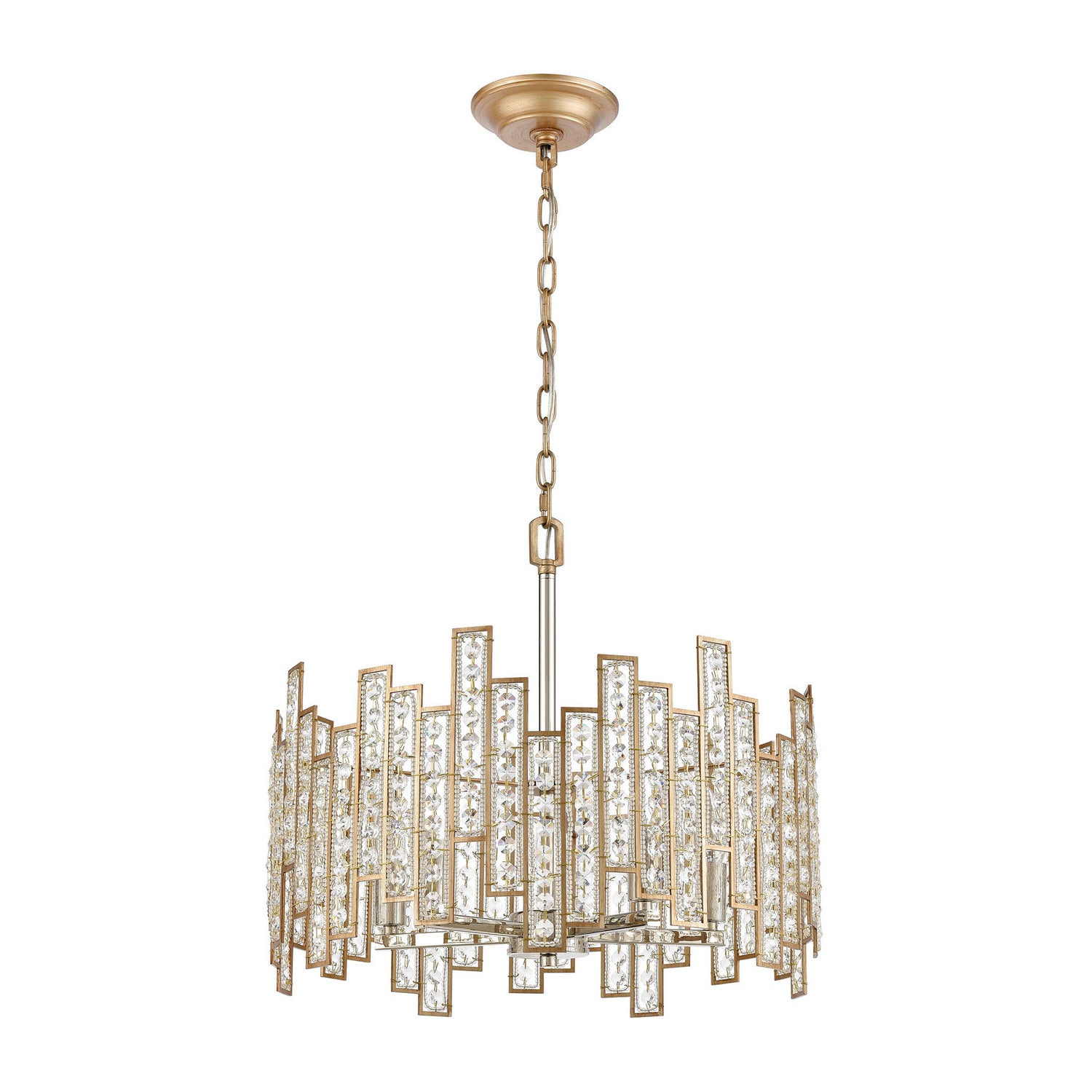Elk Lighting 12134/5 Equilibrium Five Light Chandelier Pendant Light Gold, Champ, Gld Leaf Transitional Matte Gold Metal Shade With Crystals. Please refer to the datasheet for all product specifications. Elk Lighting MPN: 12134/5