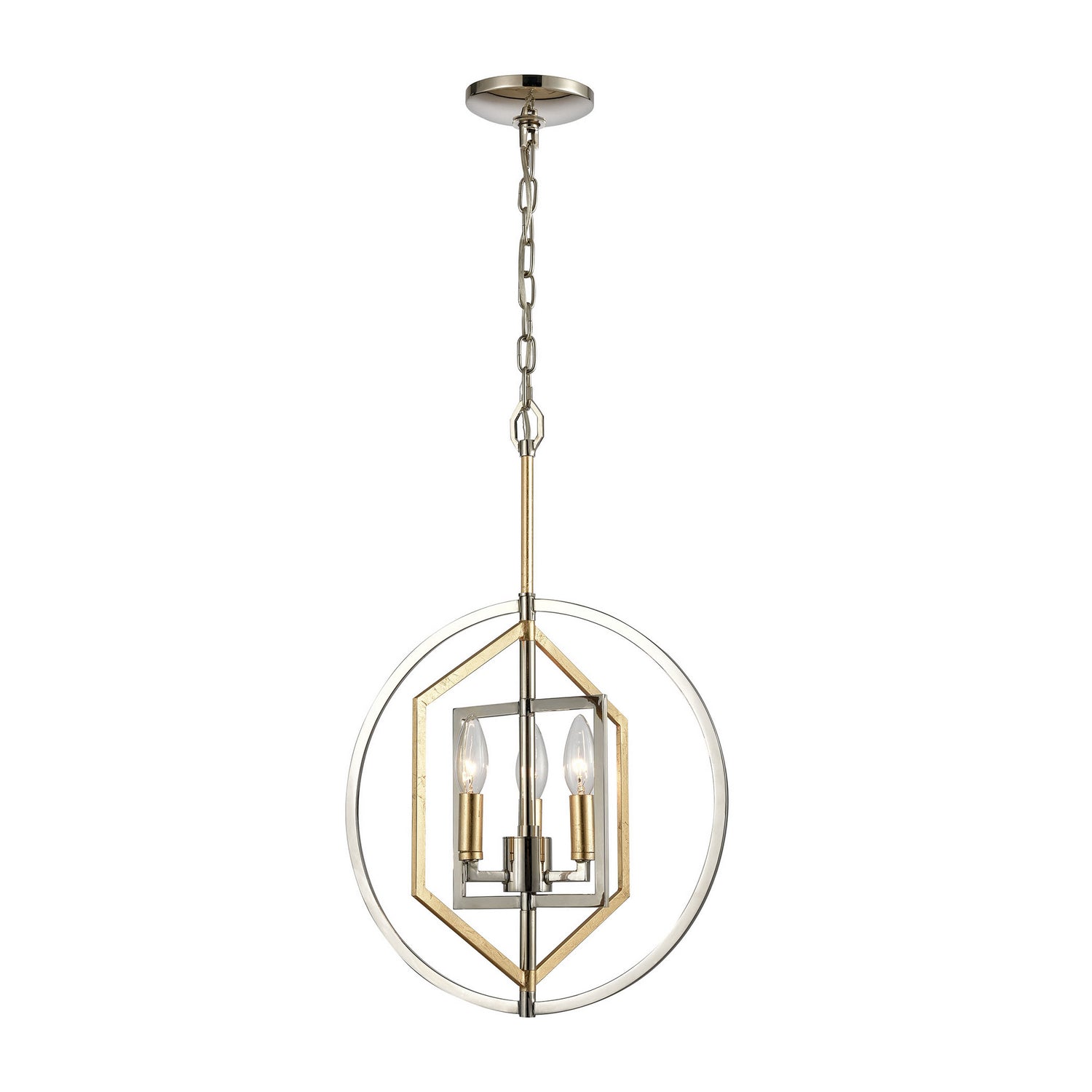 Elk Lighting 12262/3 Modern Geosphere Three Light Chandelier Chandelier Polished Nickel Contemporary Modern . Please refer to the datasheet for all product specifications. Elk Lighting MPN: 12262/3