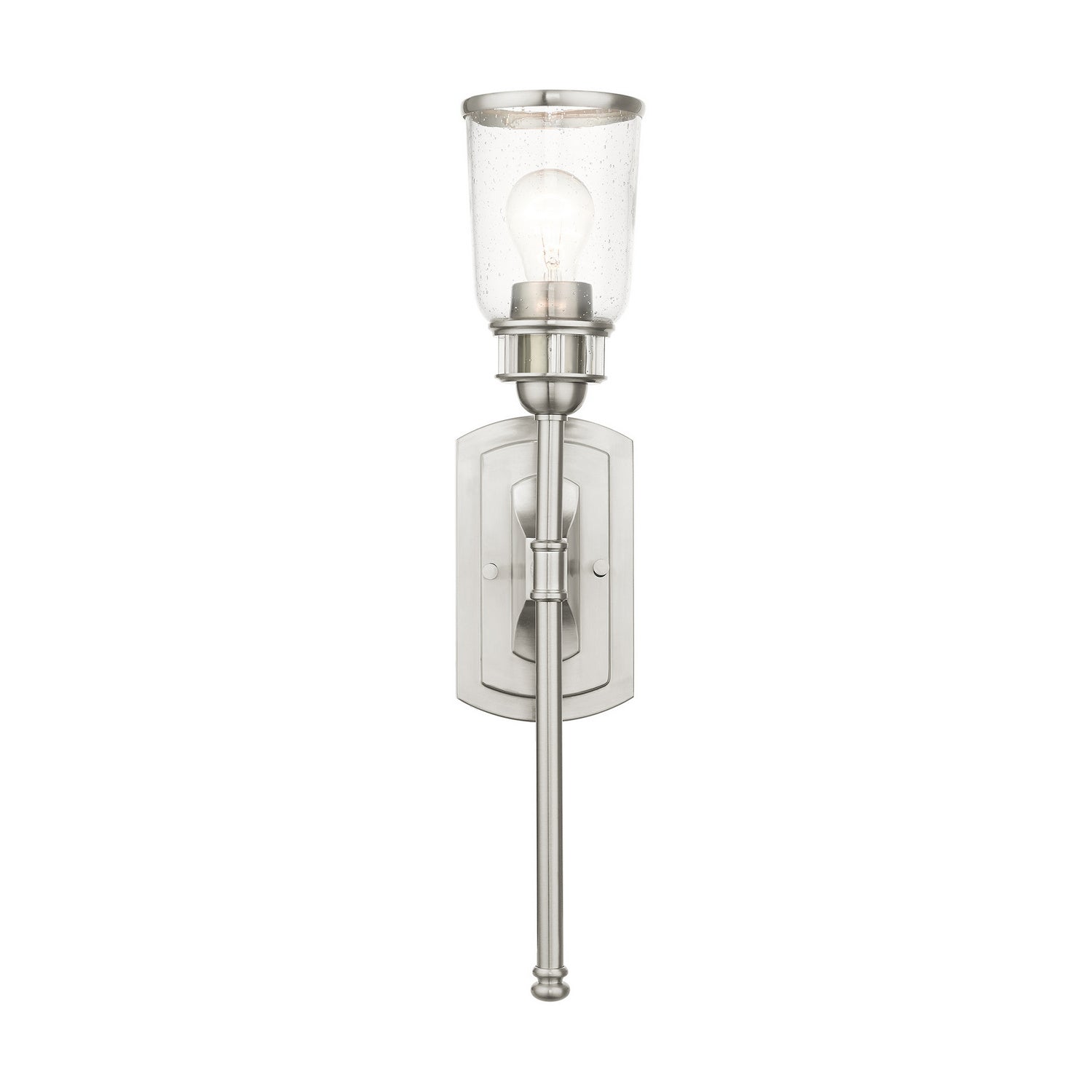 Livex Lighting 10511-91 Lawrenceville One Light Wall Sconce Wall Sconce Light Pewter, Nickel, Silver Transitional Hand Blown Clear Seeded Glass. Please refer to the datasheet for all product specifications. Livex Lighting MPN: 10511-91