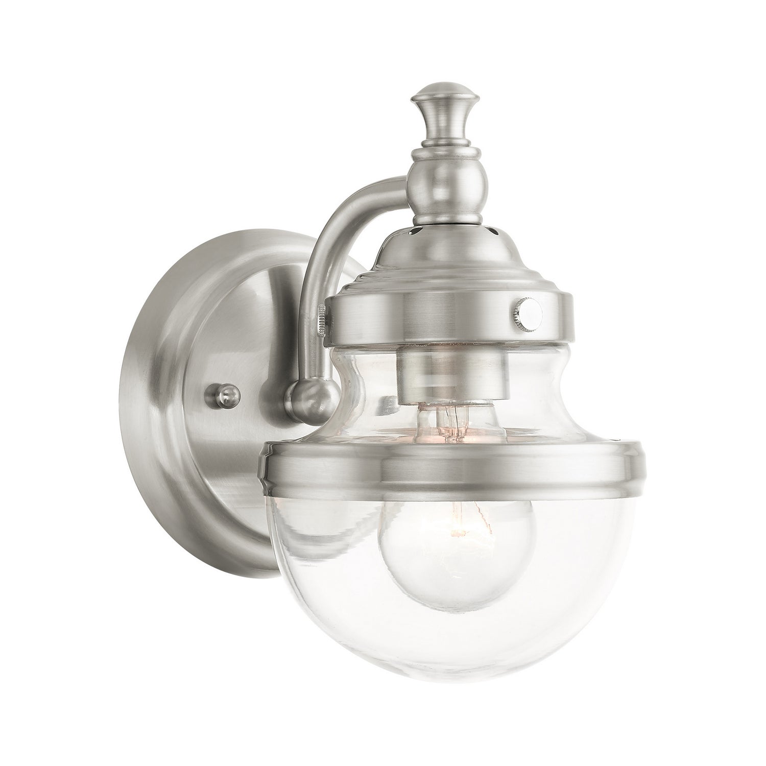 Livex Lighting 17411-91 Oldwick One Light Vanity Wall Sconce Light Pewter, Nickel, Silver Transitional Hand Blown Clear Glass. Please refer to the datasheet for all product specifications. Livex Lighting MPN: 17411-91