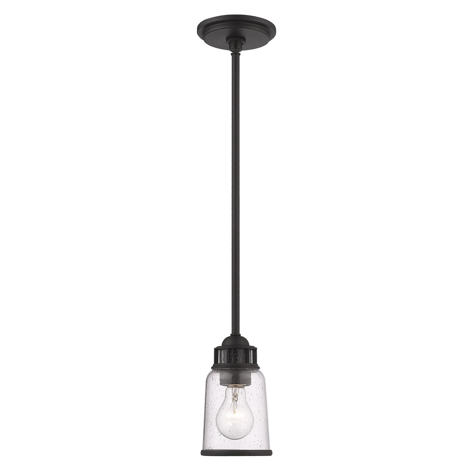 Livex Lighting 40021-07 Lawrenceville One Light Mini Pendant Pendant Light Bronze / Dark Transitional Hand Blown Clear Seeded Glass. Please refer to the datasheet for all product specifications. Livex Lighting MPN: 40021-07