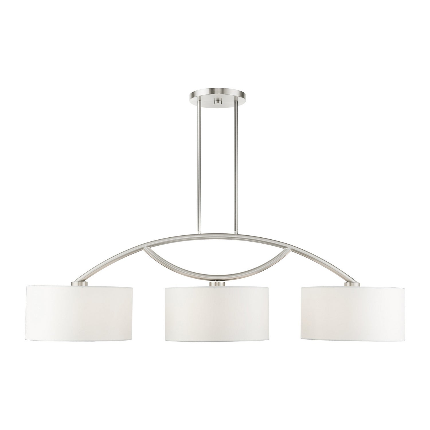 Livex Lighting 45983-91 Meridian Three Light Linear Chandelier Pendant Light Pewter, Nickel, Silver Transitional Hand Crafted Hardback Shade Completely Finished With Off-White Color Fabric Outside & Inside. Please refer to the datasheet for all product specifications. Livex Lighting MPN: 45983-91