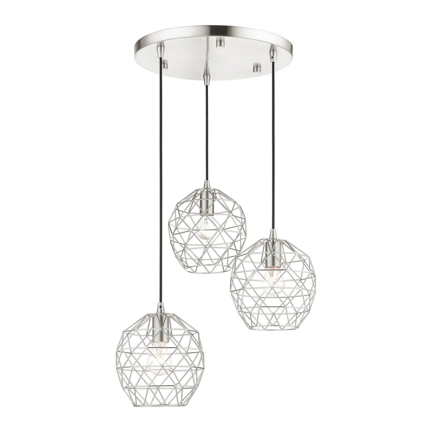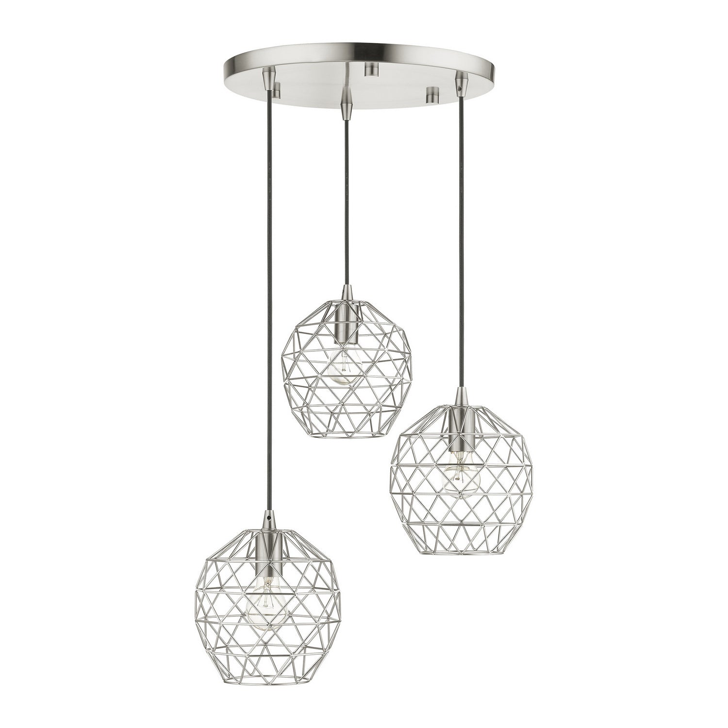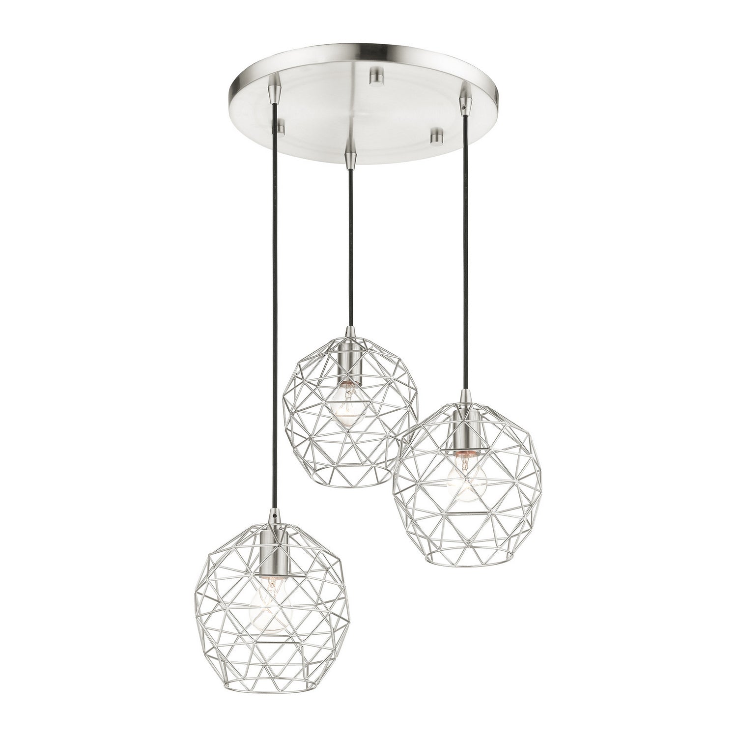 Livex Lighting 46593-91 Geometrix Three Light Pendant Pendant Light Pewter, Nickel, Silver Transitional Hand Welded Brushed Nickel Shades. Please refer to the datasheet for all product specifications. Livex Lighting MPN: 46593-91