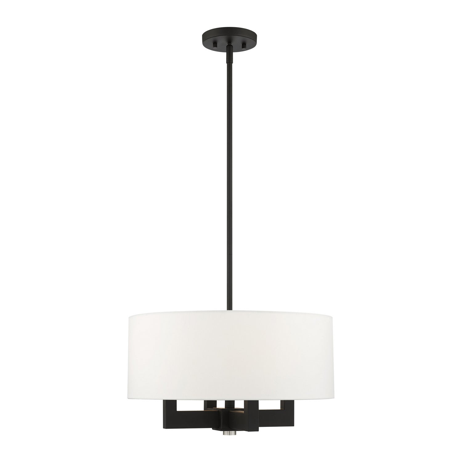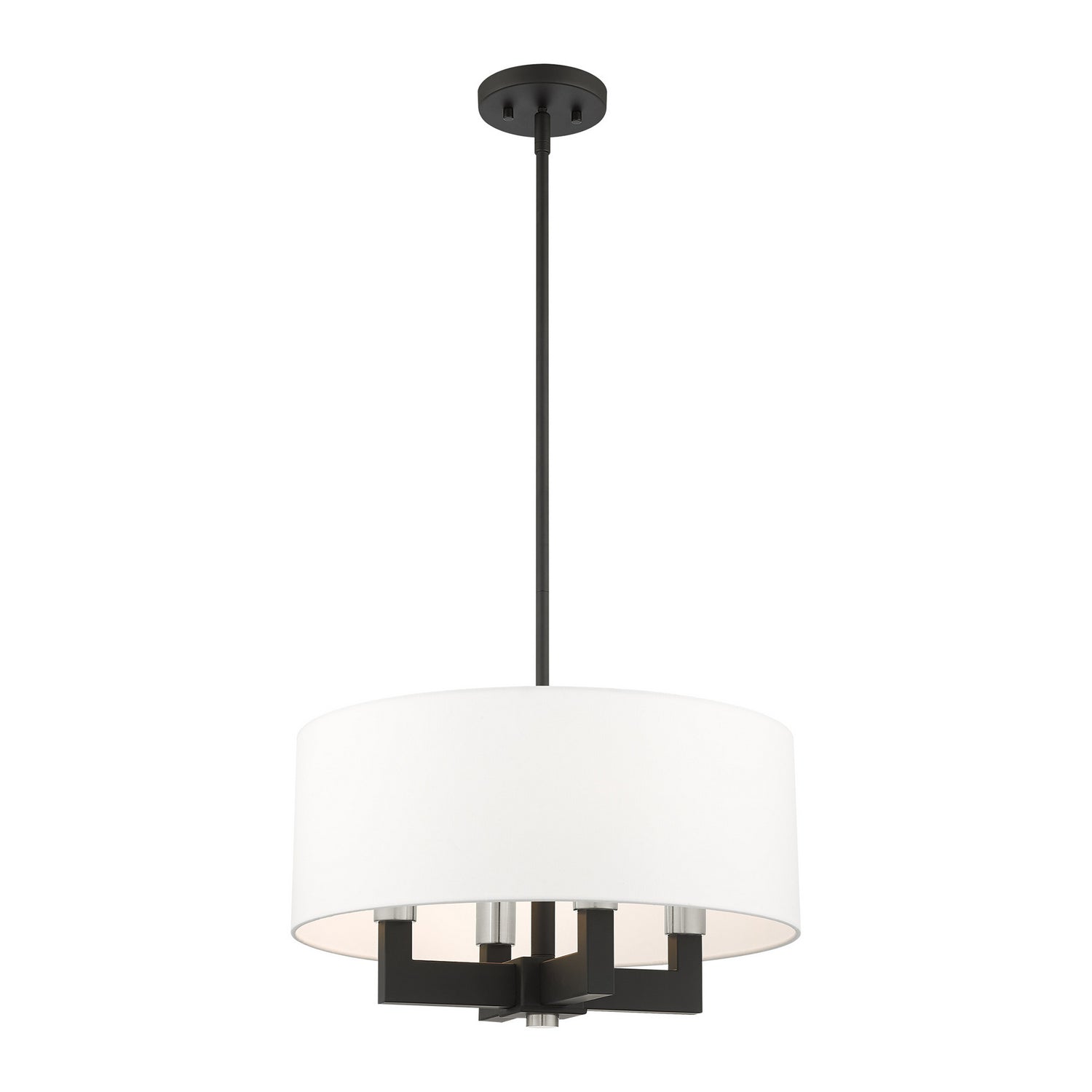 Livex Lighting 48784-04 Cresthaven Four Light Chandelier Chandelier Black Transitional Hand Crafted Off White Fabric Hardback Shade. Please refer to the datasheet for all product specifications. Livex Lighting MPN: 48784-04