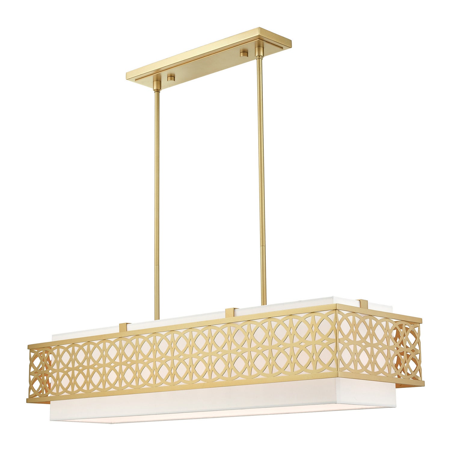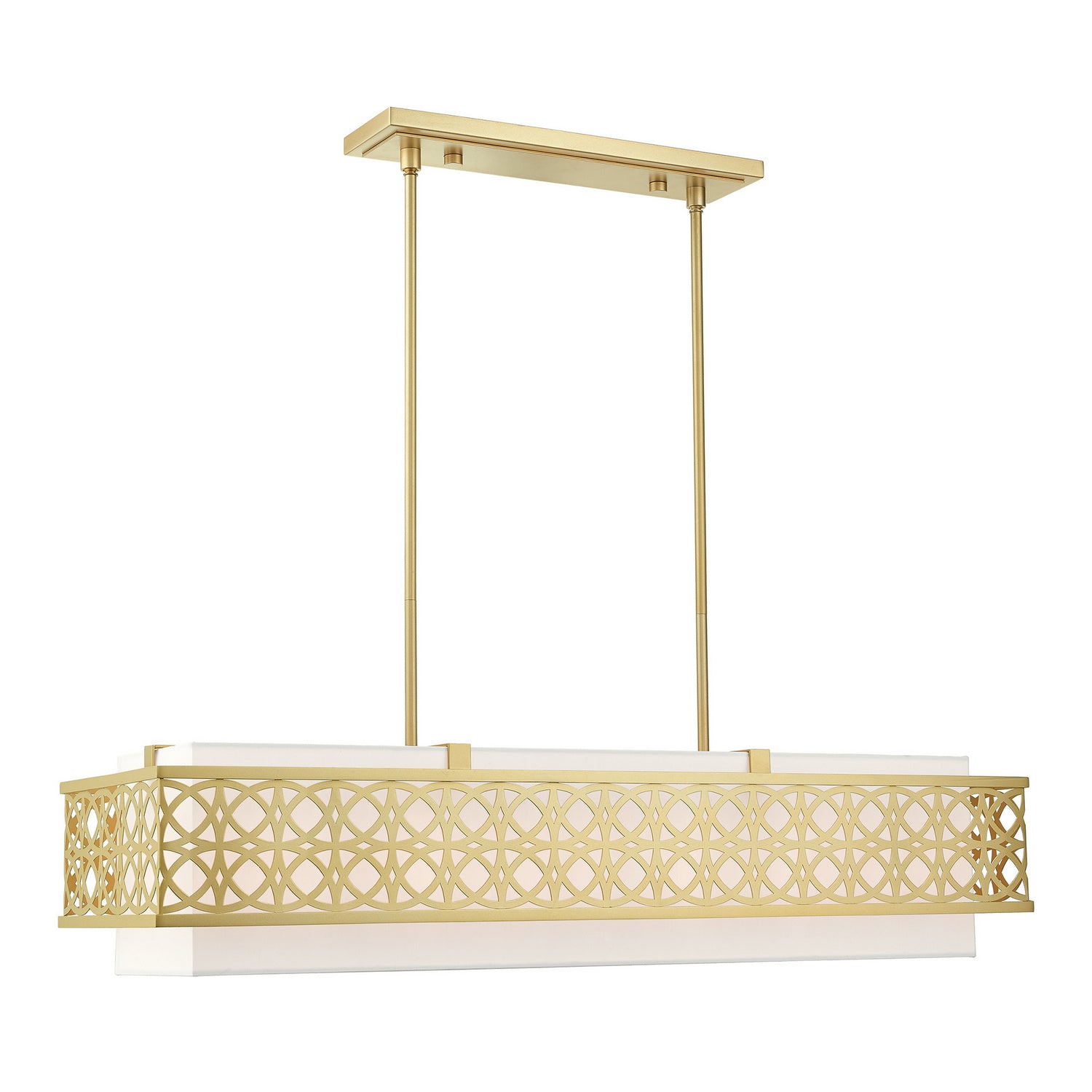 Livex Lighting 49868-33 Calinda Six Light Linear Chandelier Pendant Light Gold, Champ, Gld Leaf Transitional Hand Crafted Hardback Shade Completely Finished With Off-White Color Fabric Outside & Inside. Please refer to the datasheet for all product specifications. Livex Lighting MPN: 49868-33
