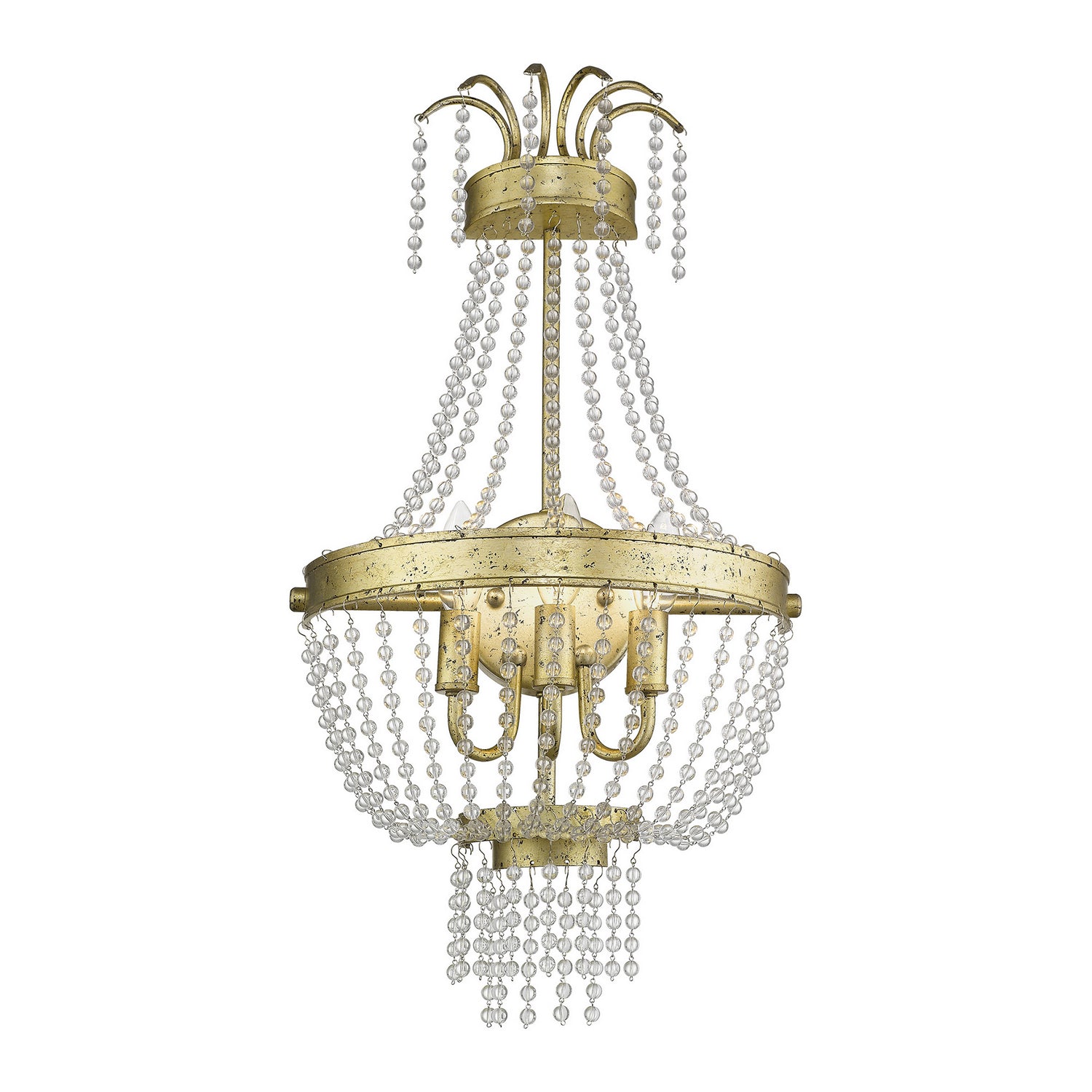Livex Lighting 51874-28 Valentina Three Light Wall Sconce Wall Sconce Light Gold, Champ, Gld Leaf Crystal Hand Strung Round Clear Crystal Beads. Please refer to the datasheet for all product specifications. Livex Lighting MPN: 51874-28