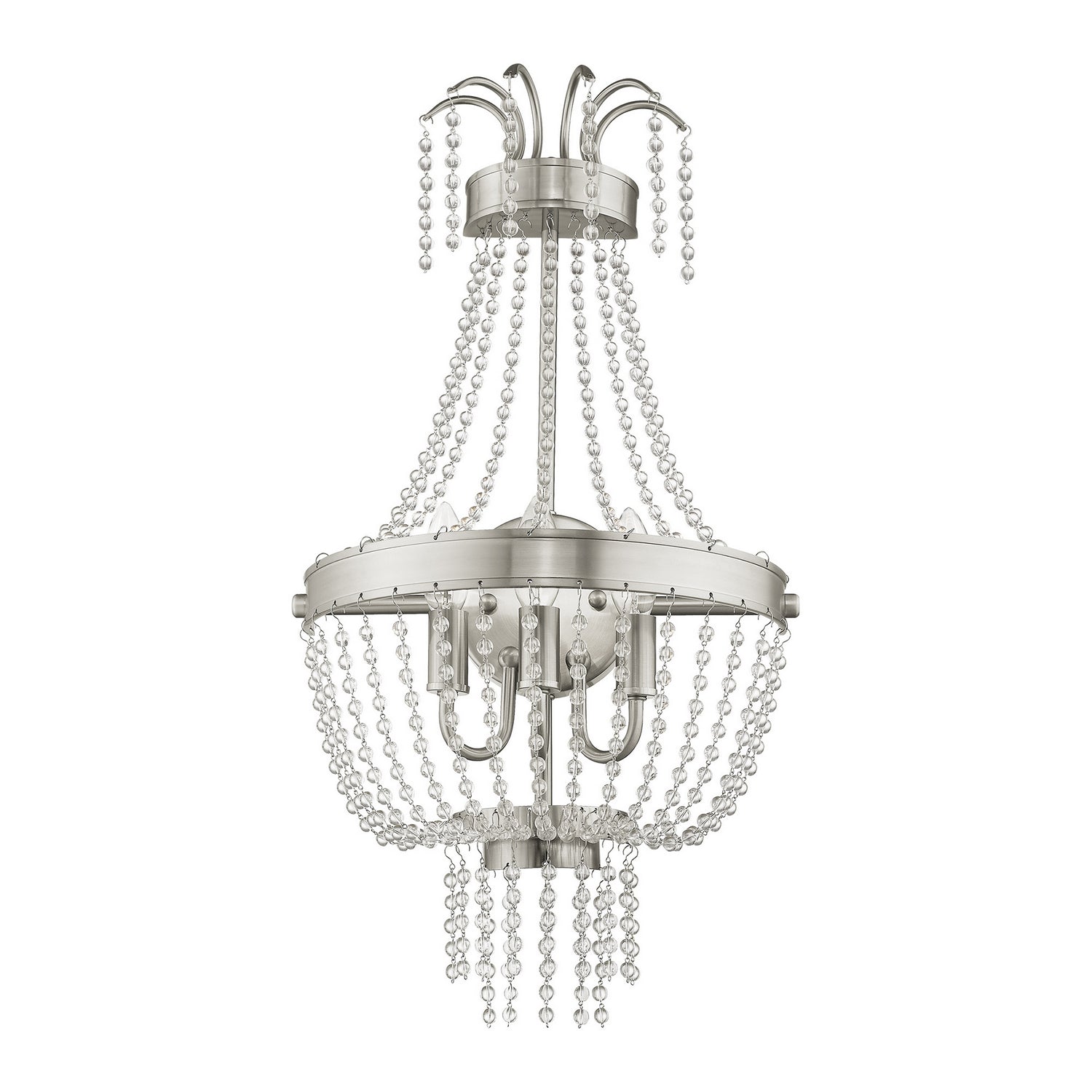 Livex Lighting 51874-91 Valentina Three Light Wall Sconce Wall Sconce Light Pewter, Nickel, Silver Crystal Hand Strung Round Clear Crystal Beads. Please refer to the datasheet for all product specifications. Livex Lighting MPN: 51874-91