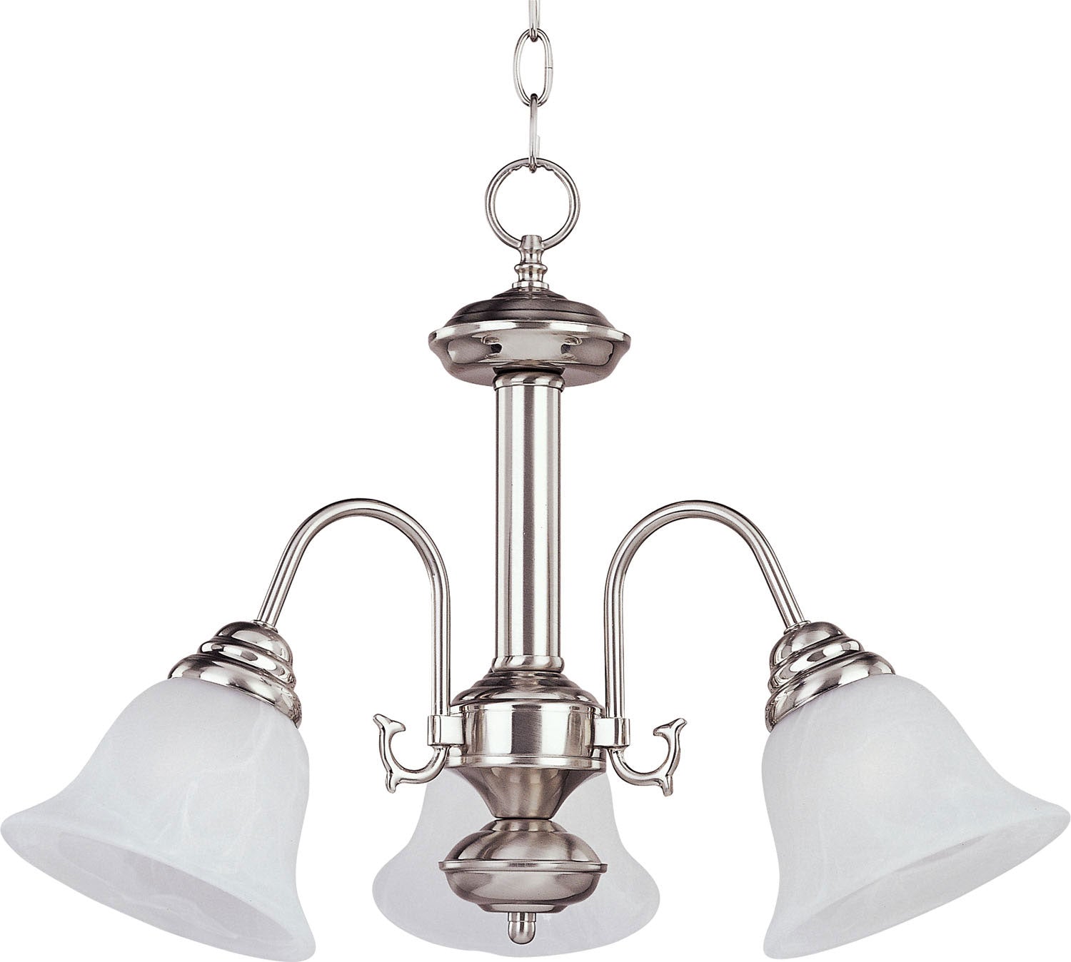 Maxim Lighting 2697MRSN Malaga Three Light Chandelier Chandelier Pewter, Nickel, Silver Traditional White. Please refer to the datasheet for all product specifications. Maxim Lighting MPN: 2697MRSN
