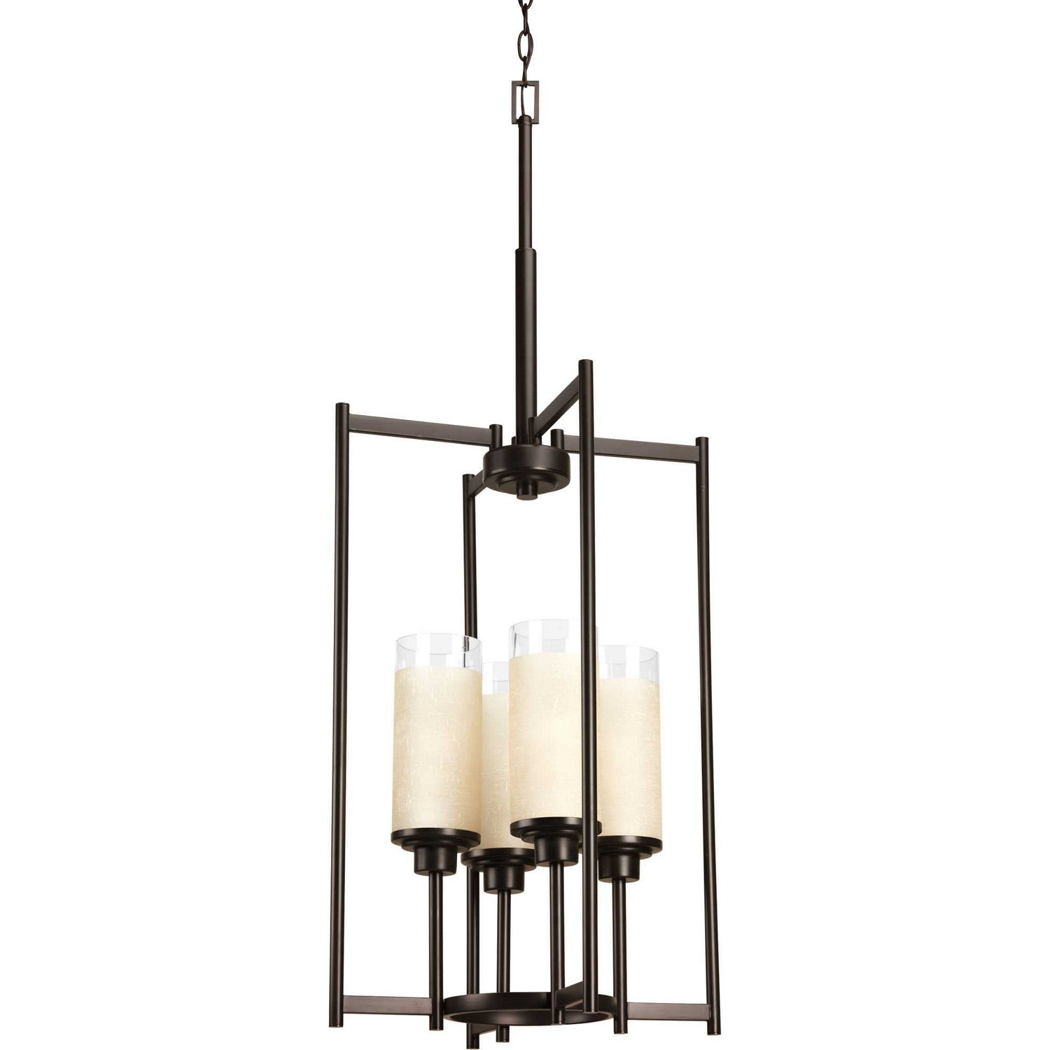 Progress Lighting P3977-20 Alexa Four Light Foyer Chandelier Pendant Light Bronze / Dark Transitional Etched Umber Linen With Clear Edge. Please refer to the datasheet for all product specifications. Progress Lighting MPN: P3977-20