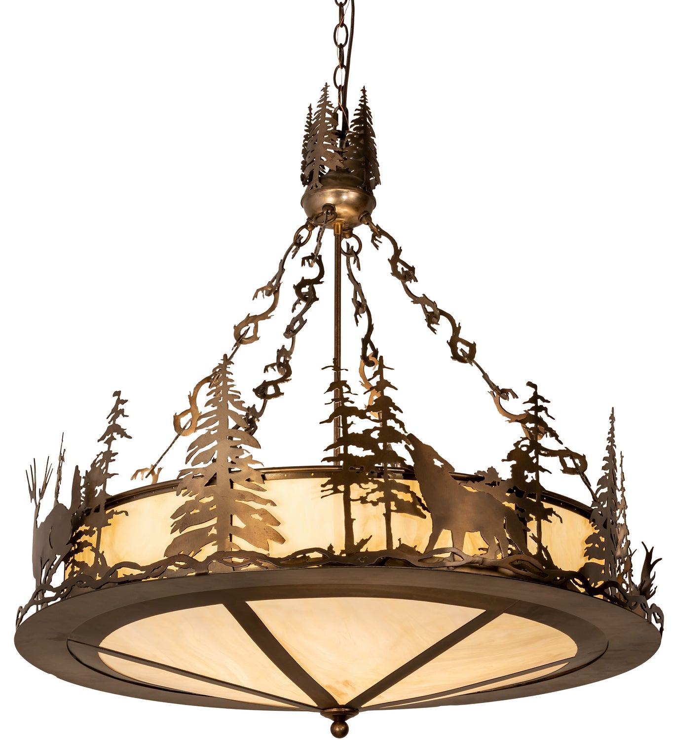 Meyda Tiffany Lighting 155008 Wildlife At Dusk Four Light Pendant Pendant Light Copper/Antique/Verde Rustic Amber Mica. Please refer to the datasheet for all product specifications. Meyda Tiffany Lighting MPN: 155008