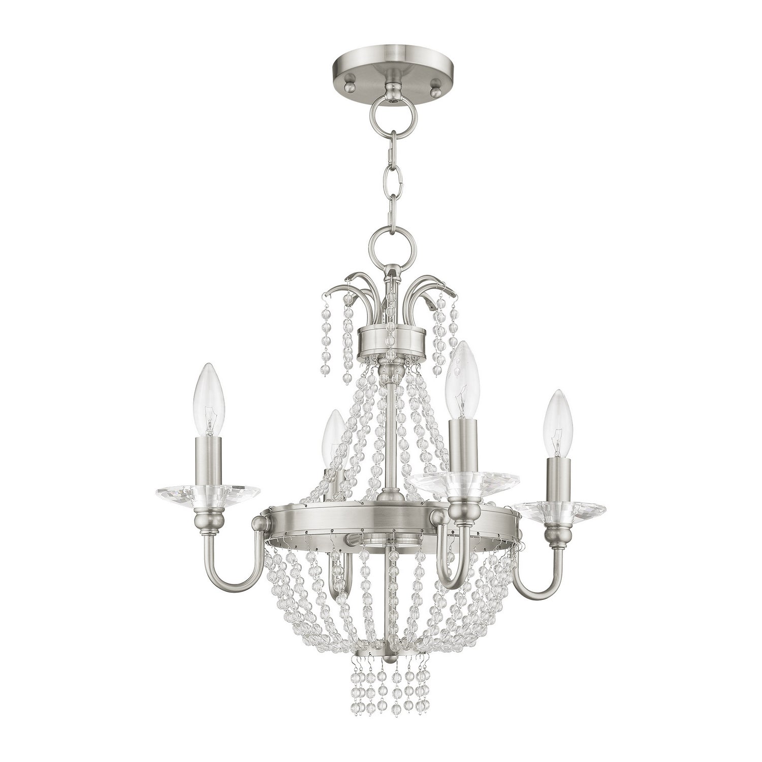 Livex Lighting 51844-91 Valentina Four Light Mini Chandelier/Ceiling Mount Chandelier Pewter, Nickel, Silver Crystal Clear. Please refer to the datasheet for all product specifications. Livex Lighting MPN: 51844-91