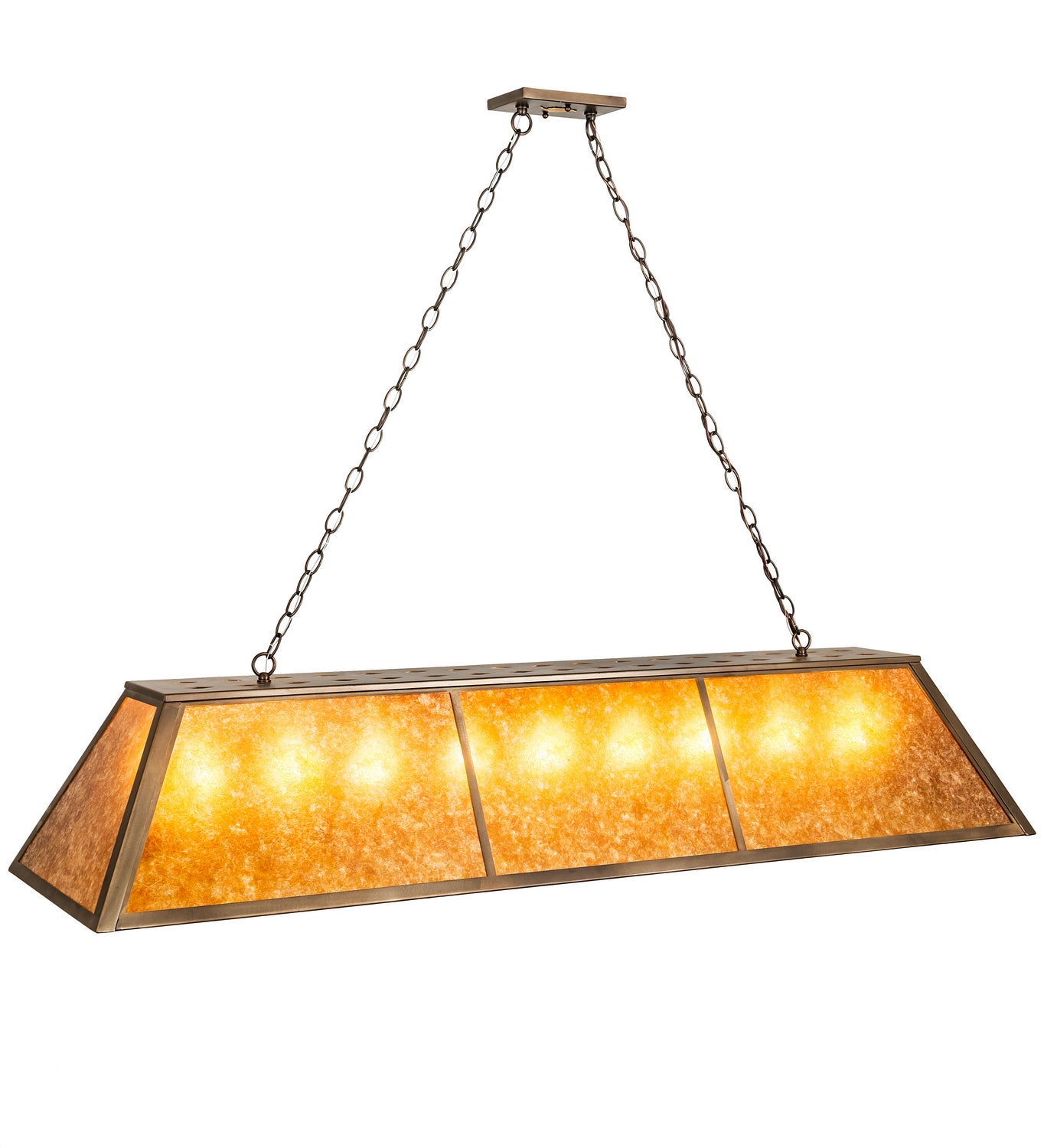 Meyda Tiffany Lighting 202836 Tri-Panel Nine Light Pendant Pendant Light Copper/Antique/Verde Transitional Amber Mica. Please refer to the datasheet for all product specifications. Meyda Tiffany Lighting MPN: 202836