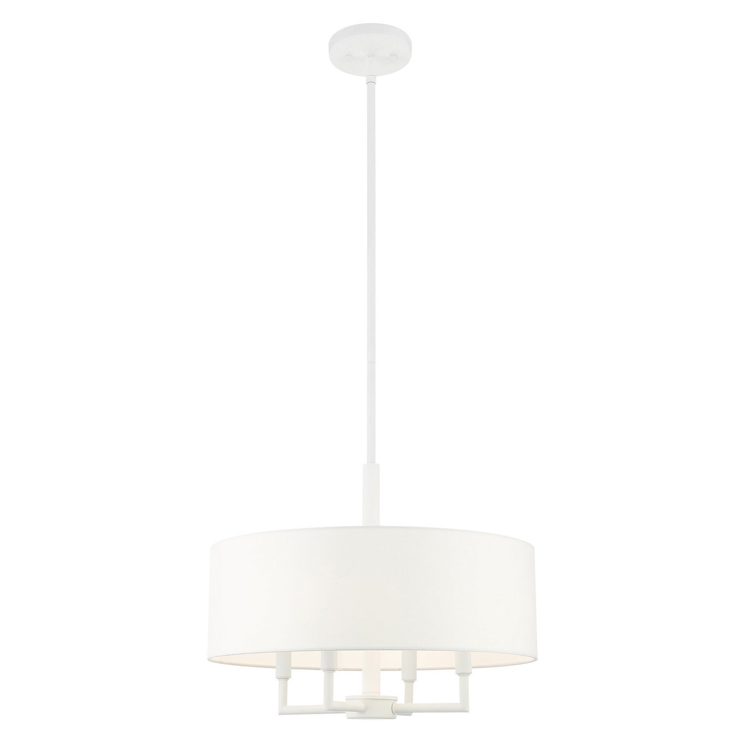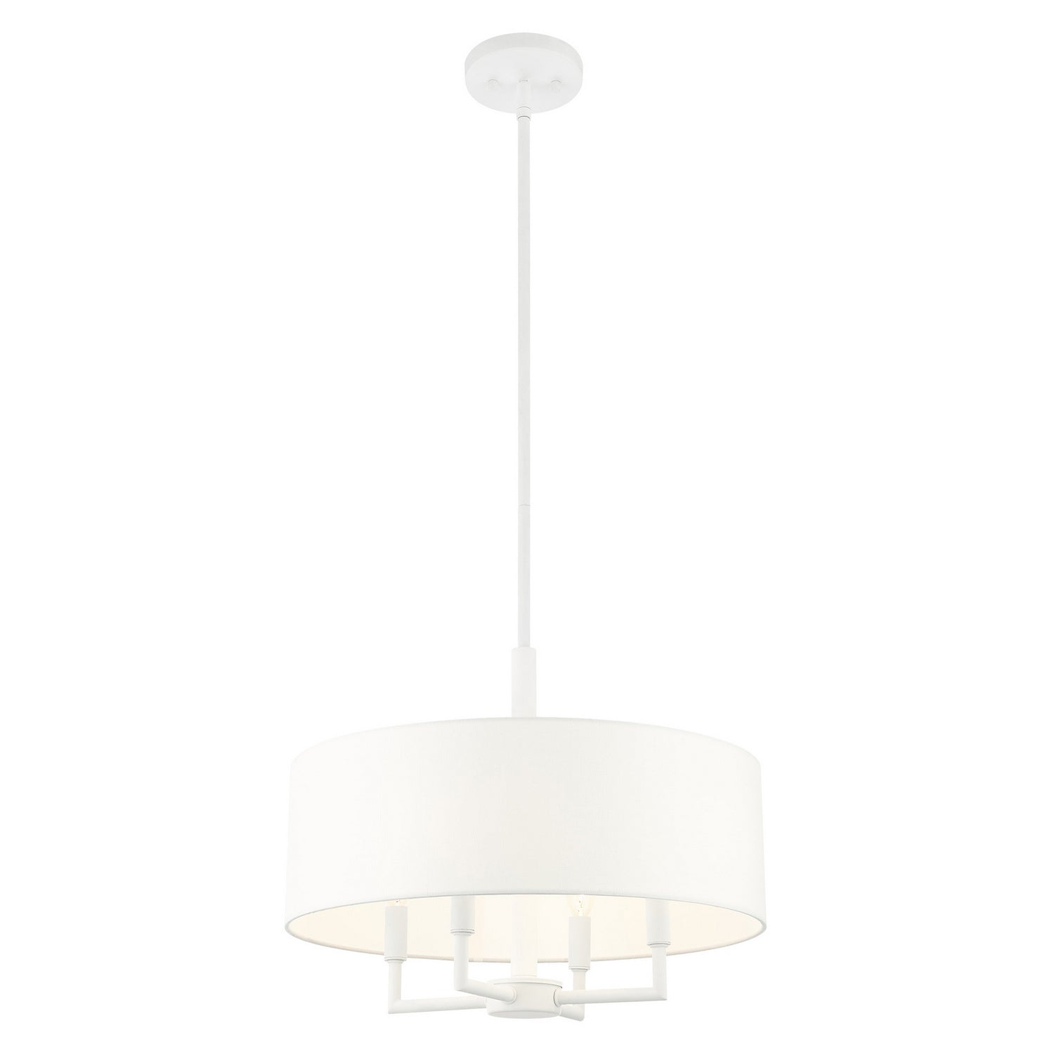 Livex Lighting 49374-03 Meridian Four Light Chandelier Chandelier White Transitional Hand Crafted Hardback Shade Completely Finished With Off-White Color Fabric Outside & Inside. Please refer to the datasheet for all product specifications. Livex Lighting MPN: 49374-03
