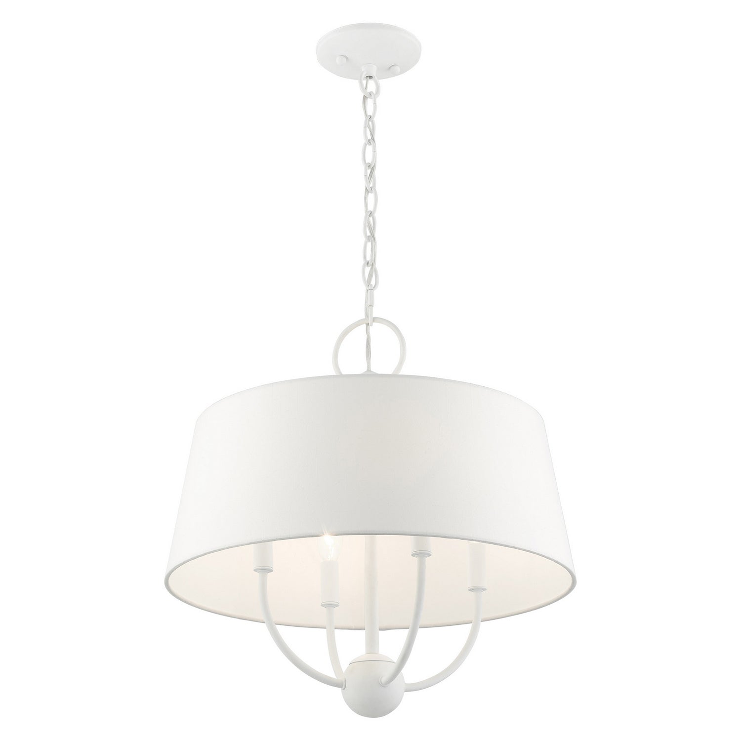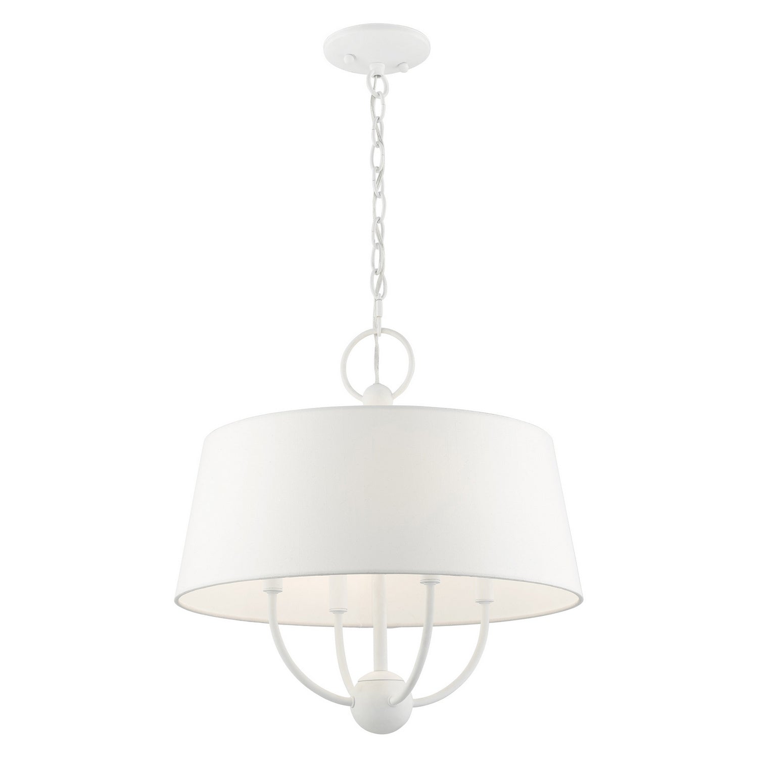 Livex Lighting 49844-03 Ridgecrest Four Light Chandelier Chandelier White Transitional Hand Crafted Hardback Shade Completely Finished With Off-White Color Fabric Outside & Inside. Please refer to the datasheet for all product specifications. Livex Lighting MPN: 49844-03