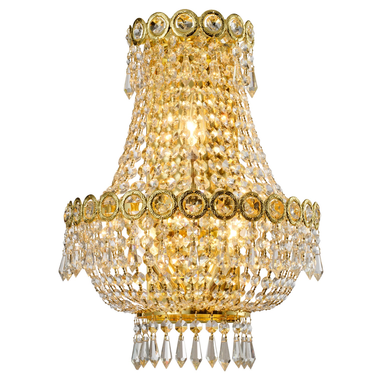 Worldwide Lighting W23021G12 Empire Three Light Wall Sconce Wall Light Gold, Champ, Gld Leaf Traditional Clear. Please refer to the datasheet for all product specifications. Worldwide Lighting MPN: W23021G12