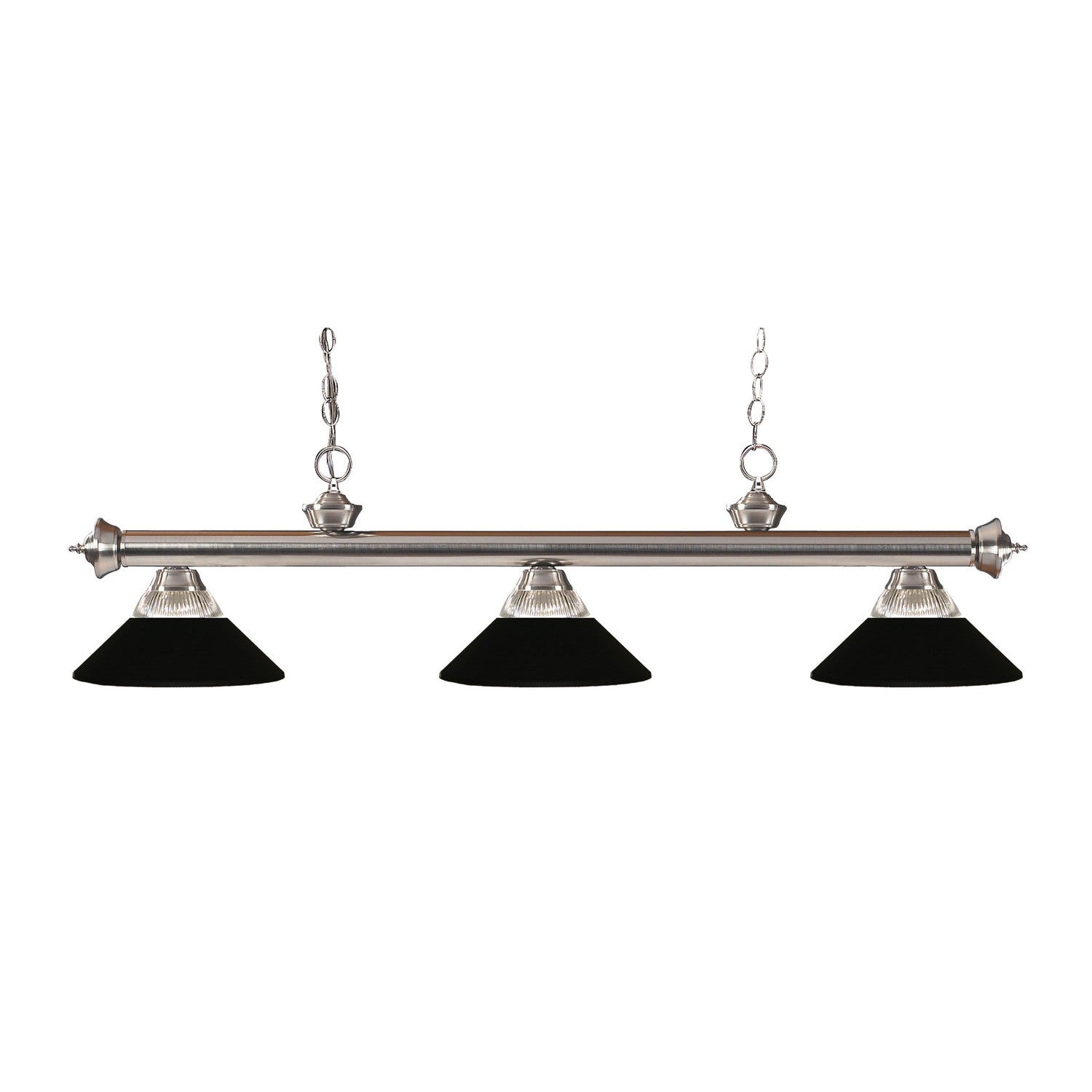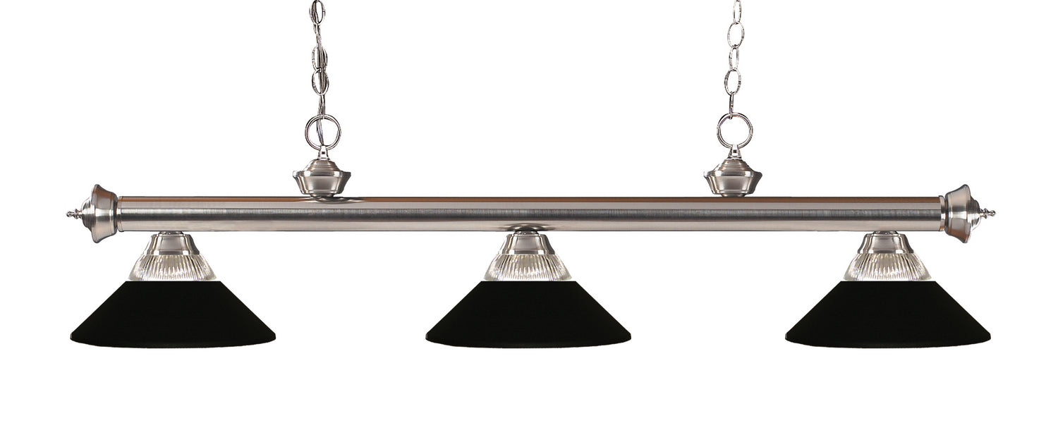 Z-Lite Lighting 100703BN-RMB Riviera Three Light Island Pendant Pendant Light Pewter, Nickel, Silver Transitional Clear Ribbed / Matte Black. Please refer to the datasheet for all product specifications. Z-Lite Lighting MPN: 100703BN-RMB